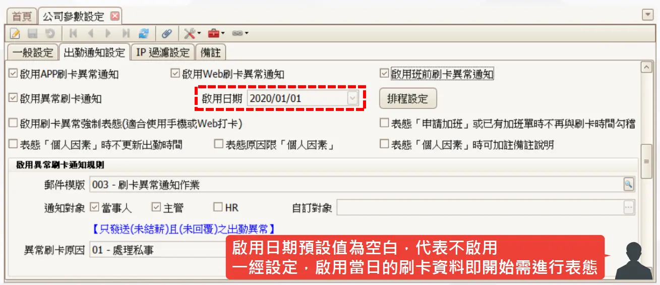 如何設定與處理「異常刷卡表態」與出勤通知